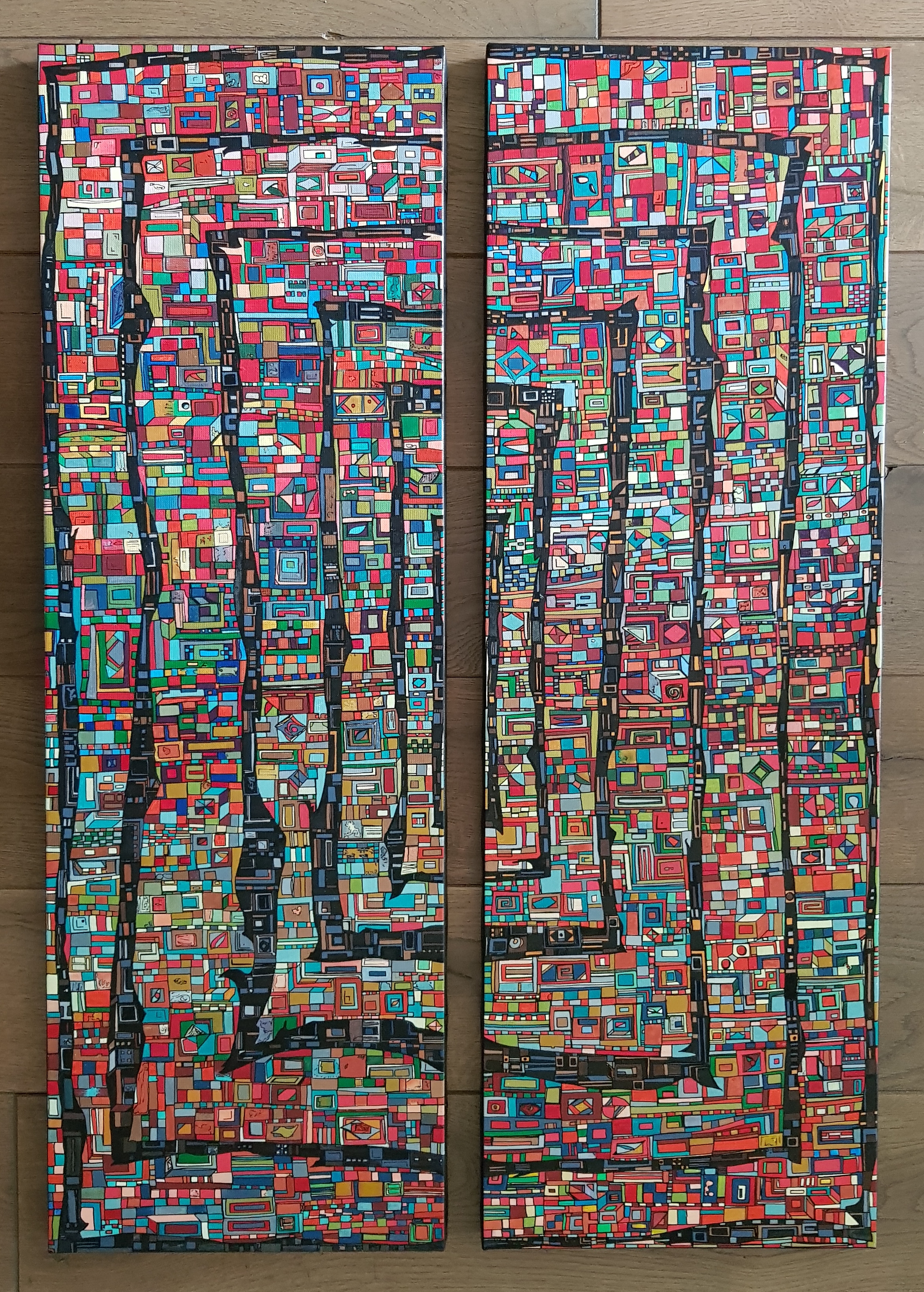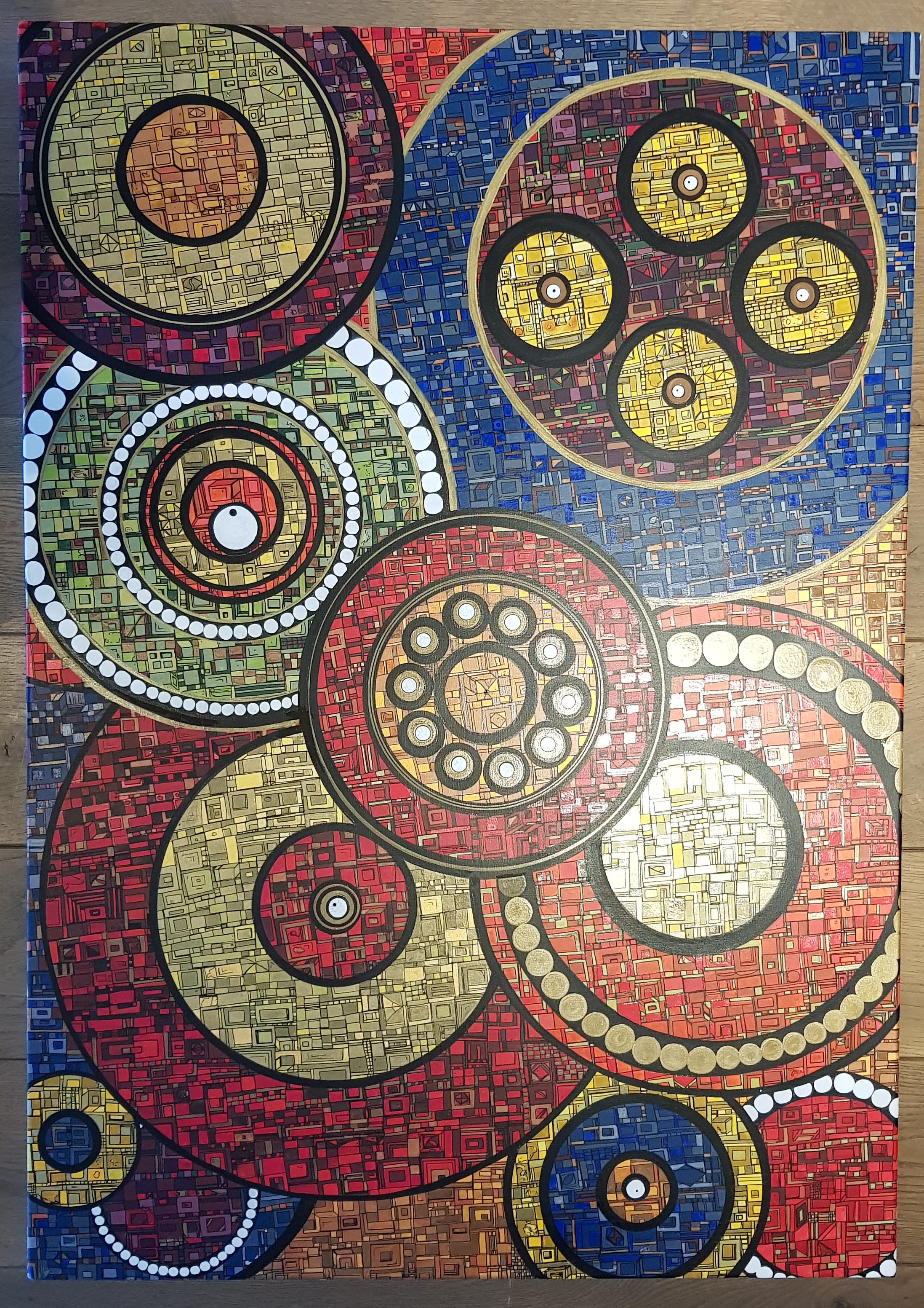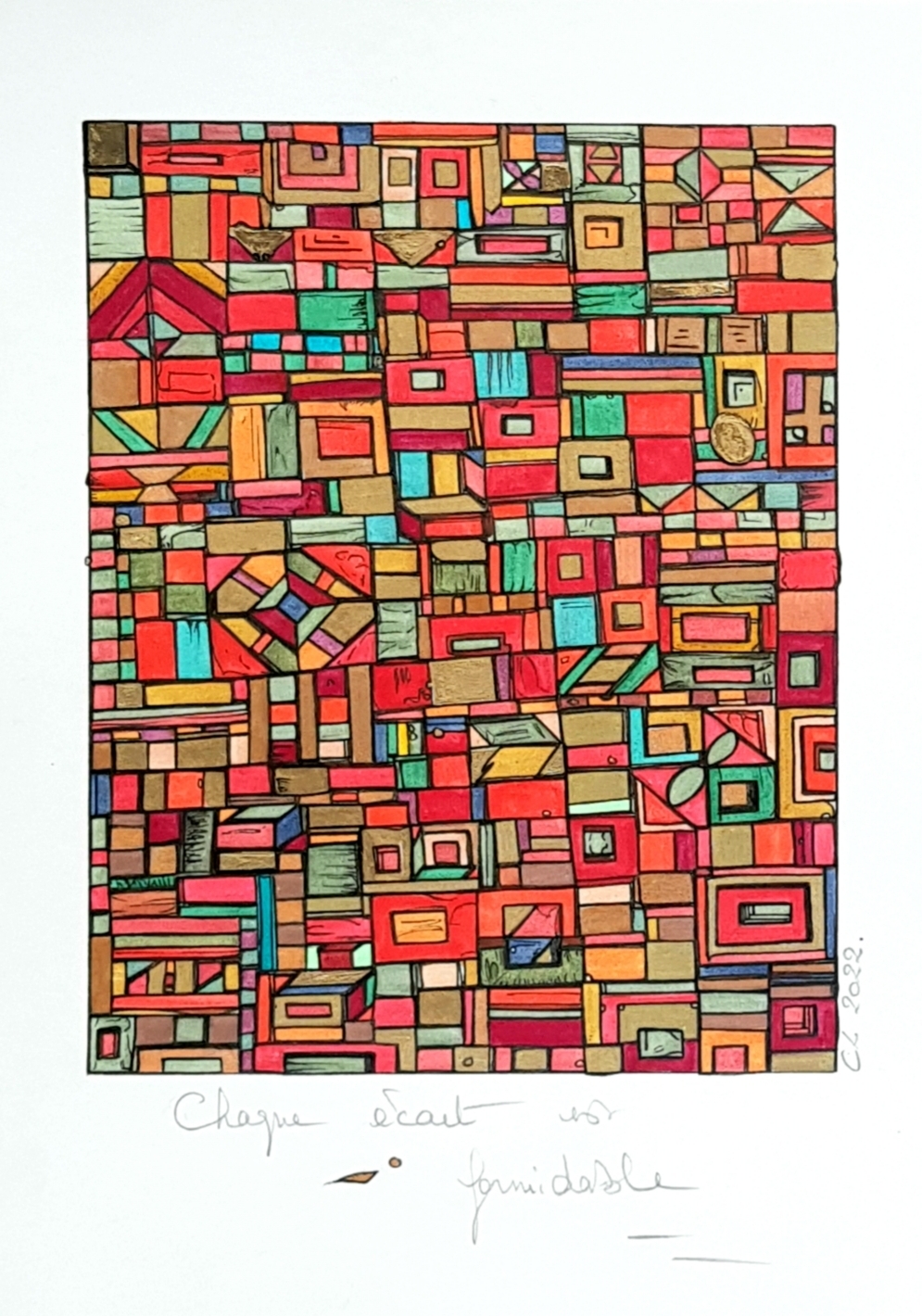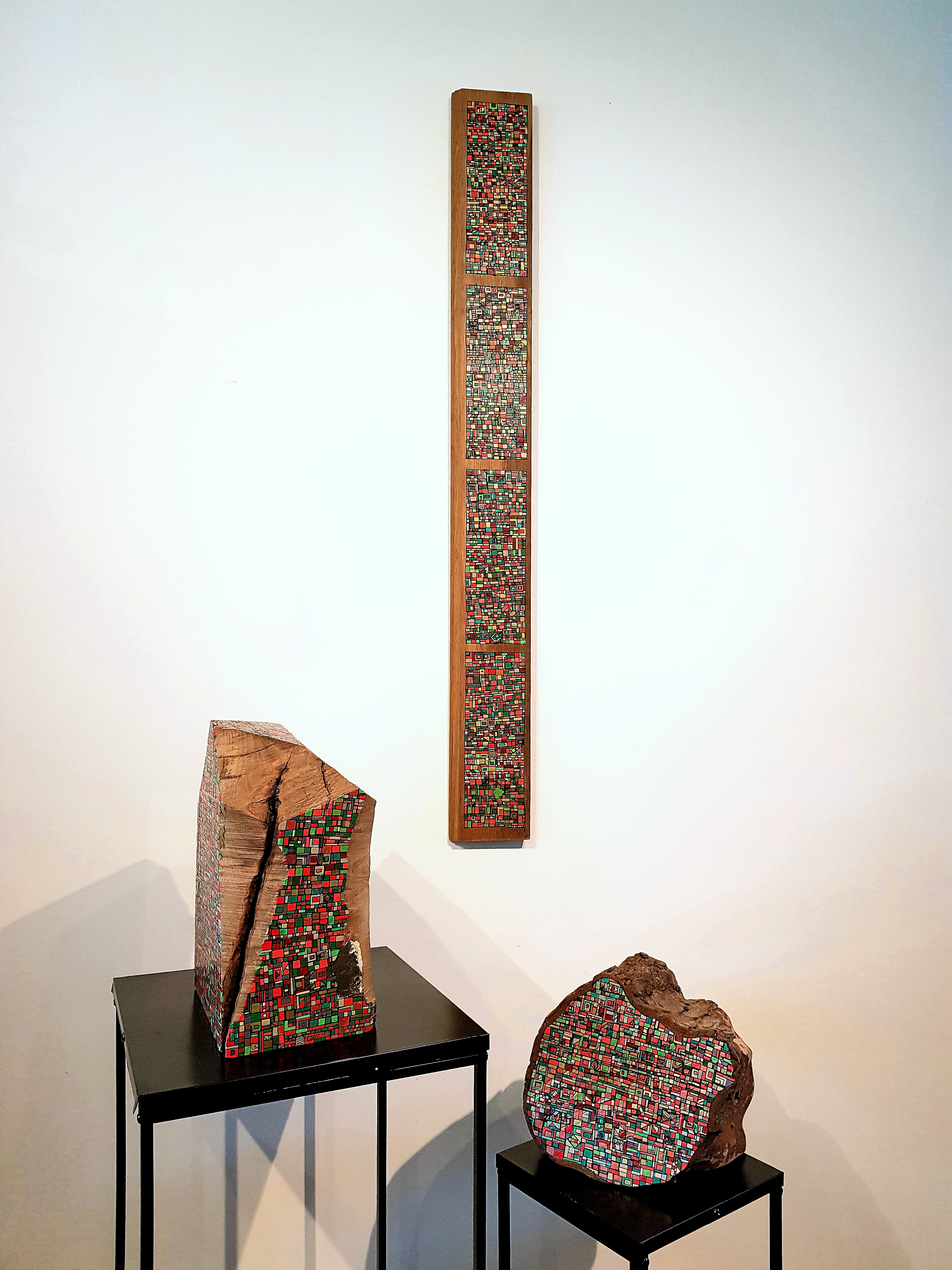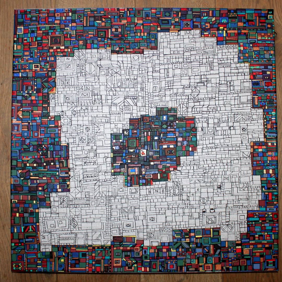 Des centaines d’heures de travail pour chaque œuvre. Un travail minutieux, répétitif, contemplatif, intuitif mais ô combien libérateur pour l’artiste mais aussi pour le regardeur. Une conversation s’installe dans un voyage à partager.
