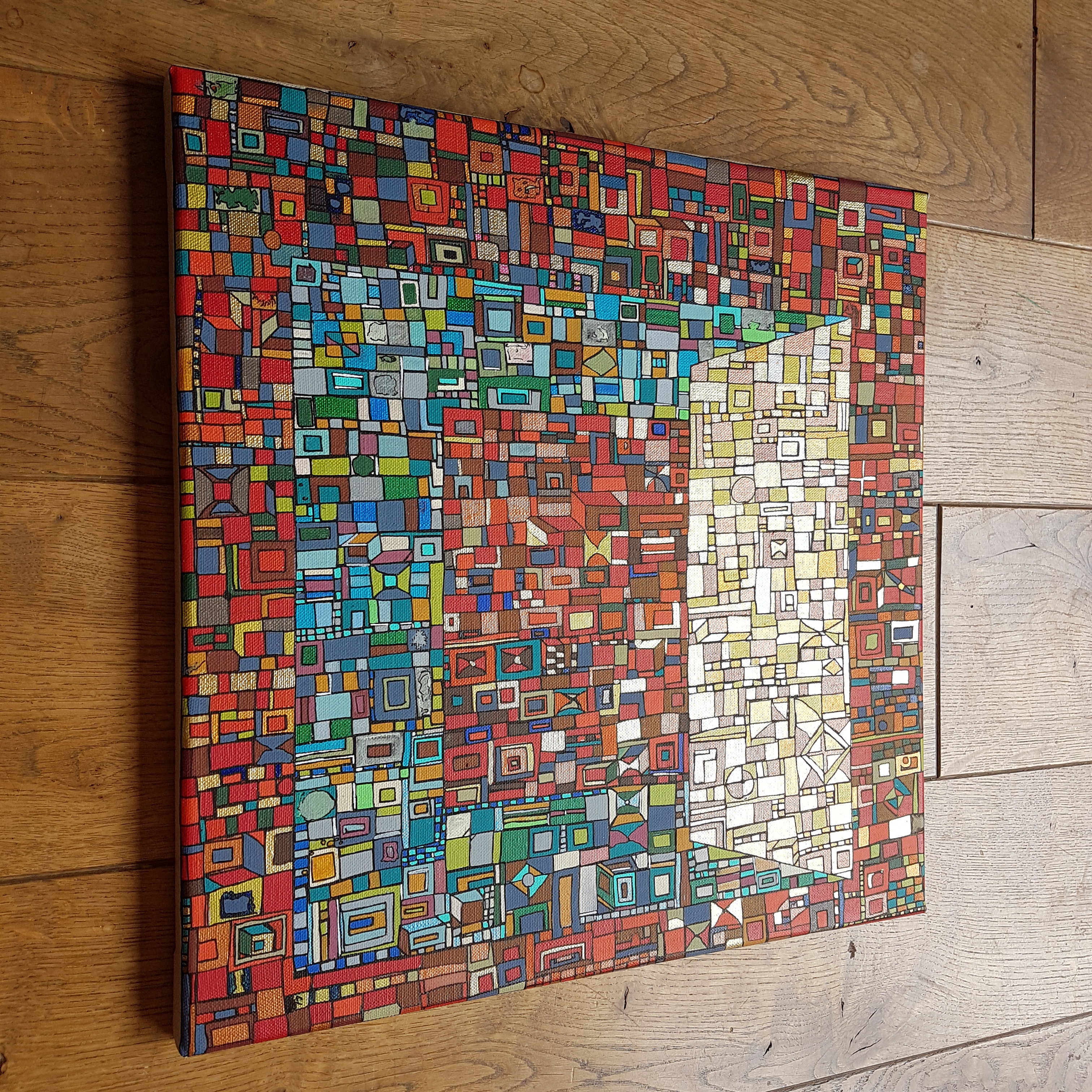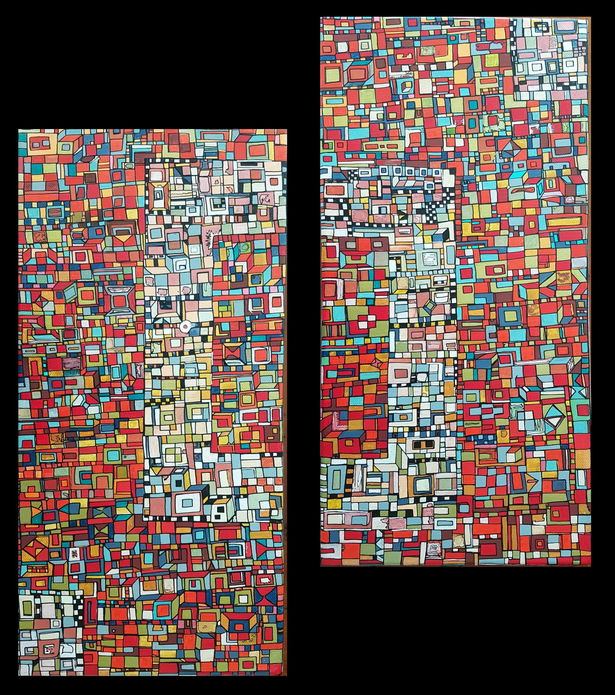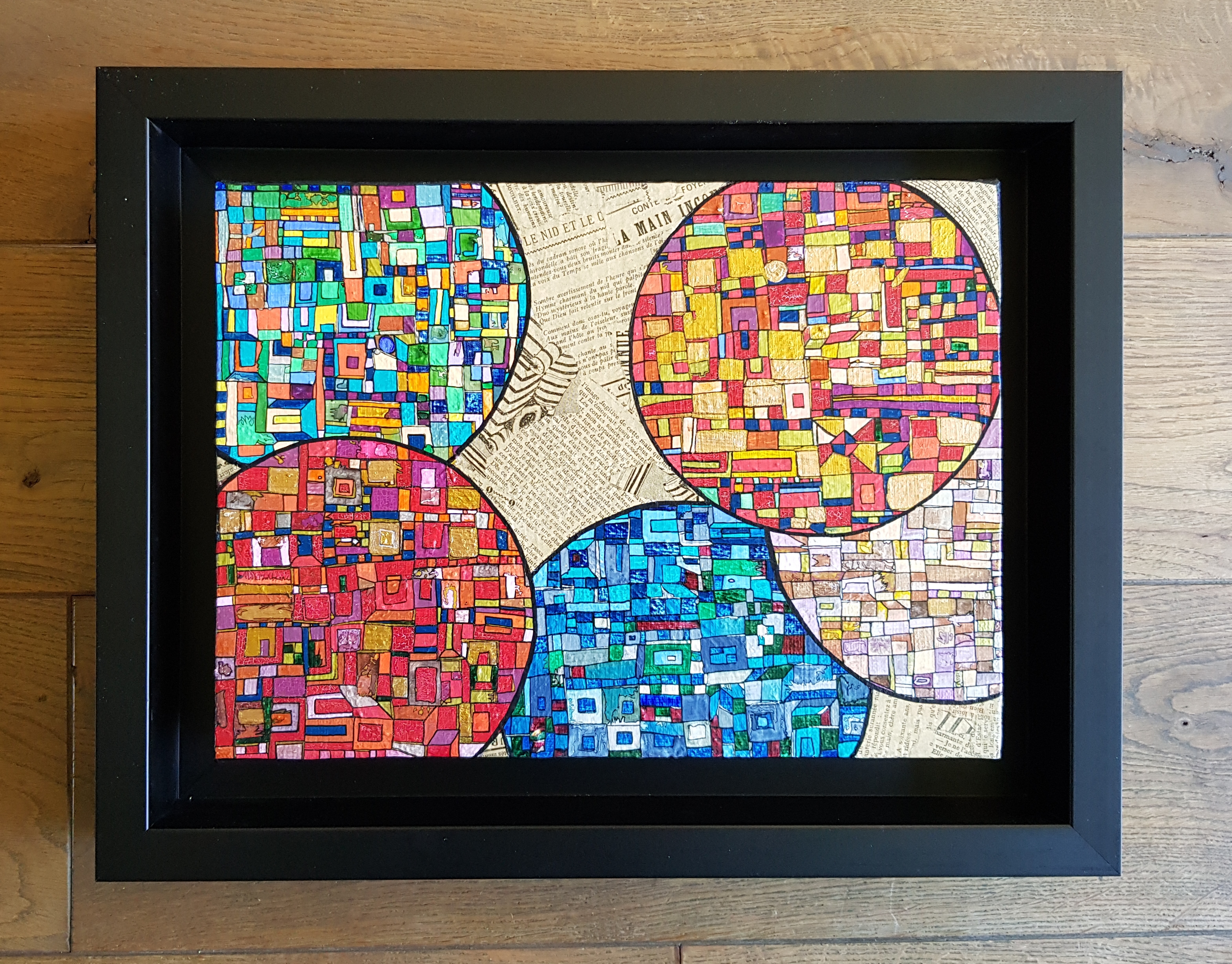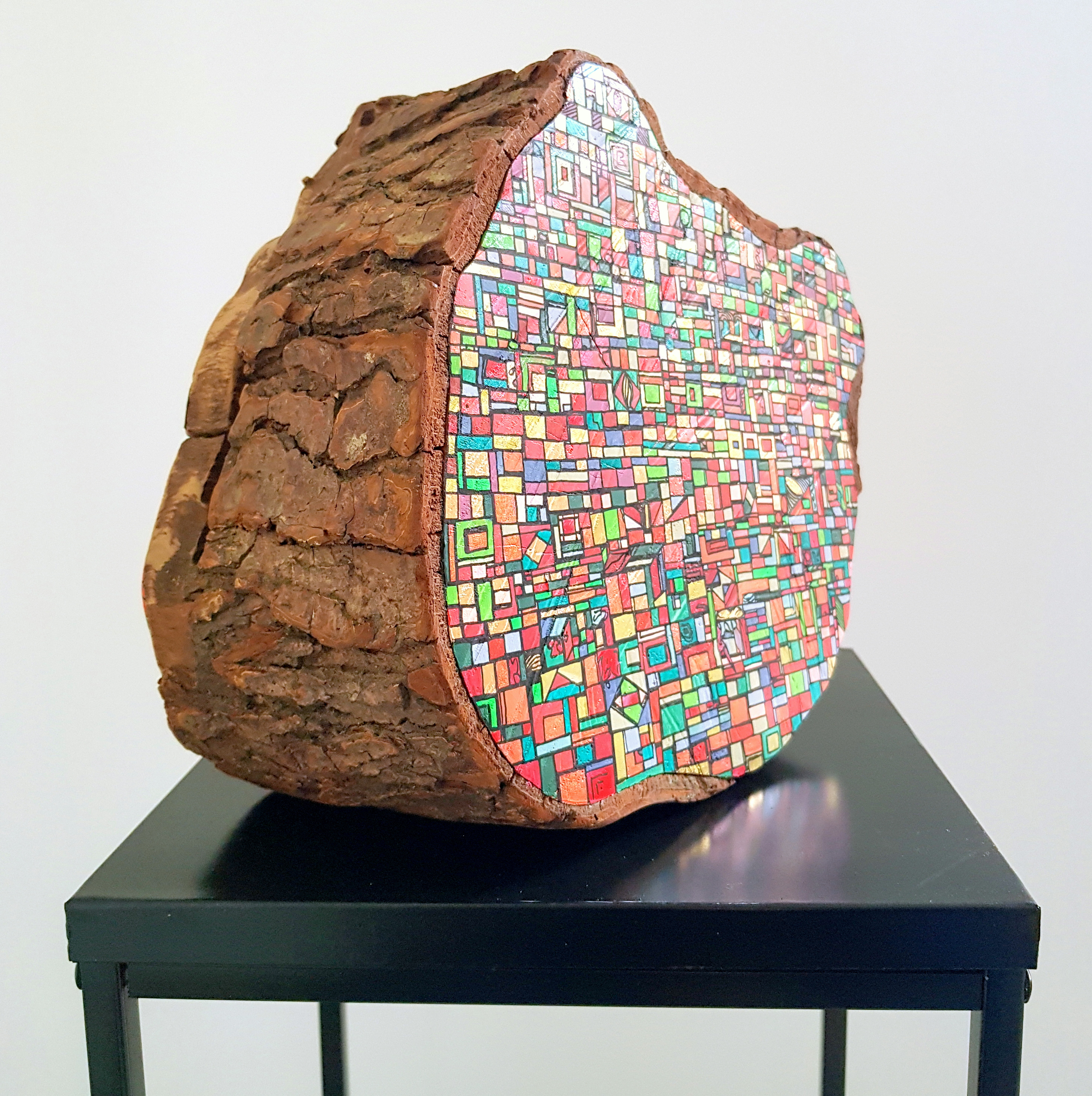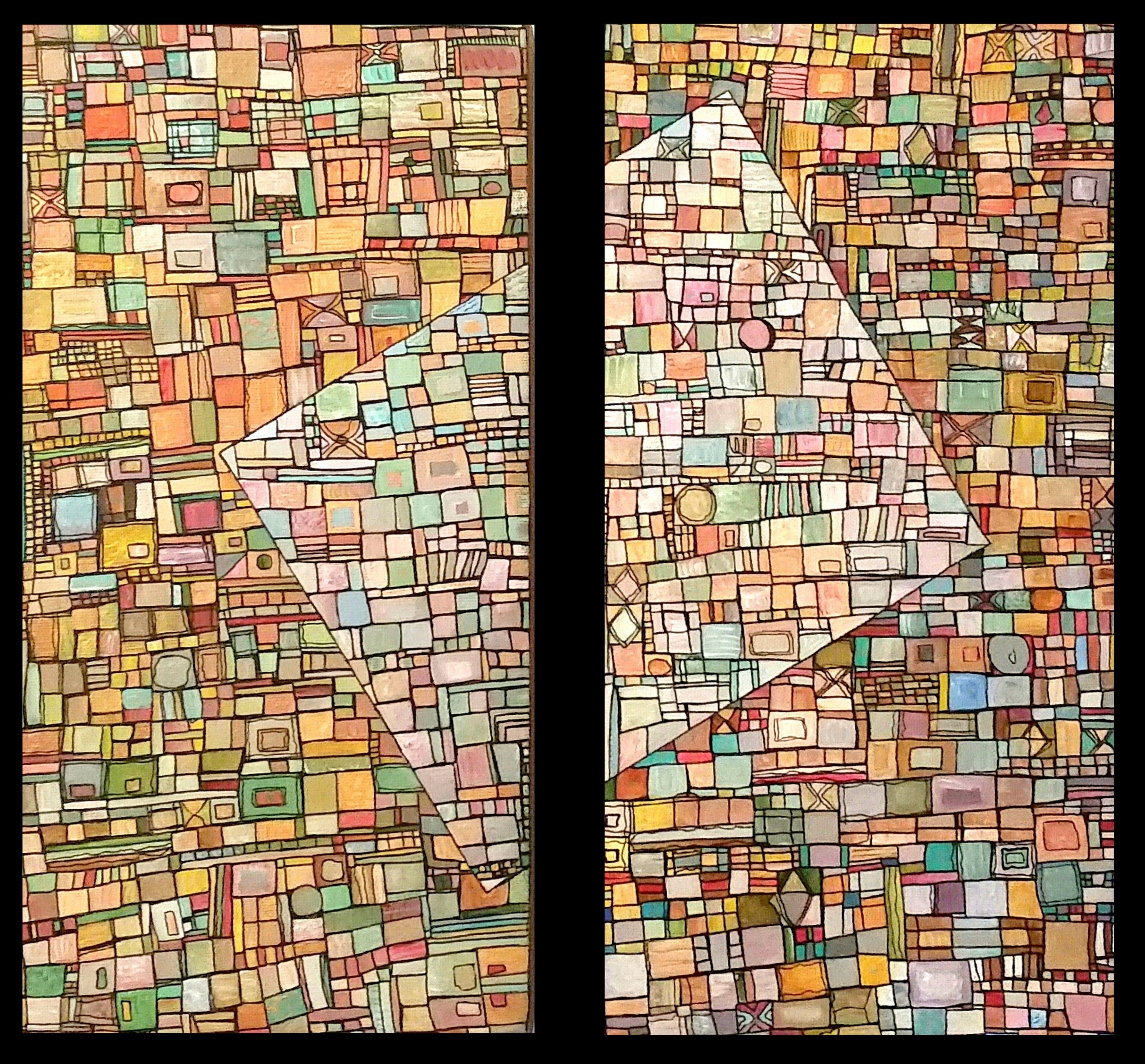 Des centaines d’heures de travail pour chaque œuvre. Un travail minutieux, répétitif, contemplatif, intuitif mais ô combien libérateur pour l’artiste mais aussi pour le regardeur. Une conversation s’installe dans un voyage à partager.