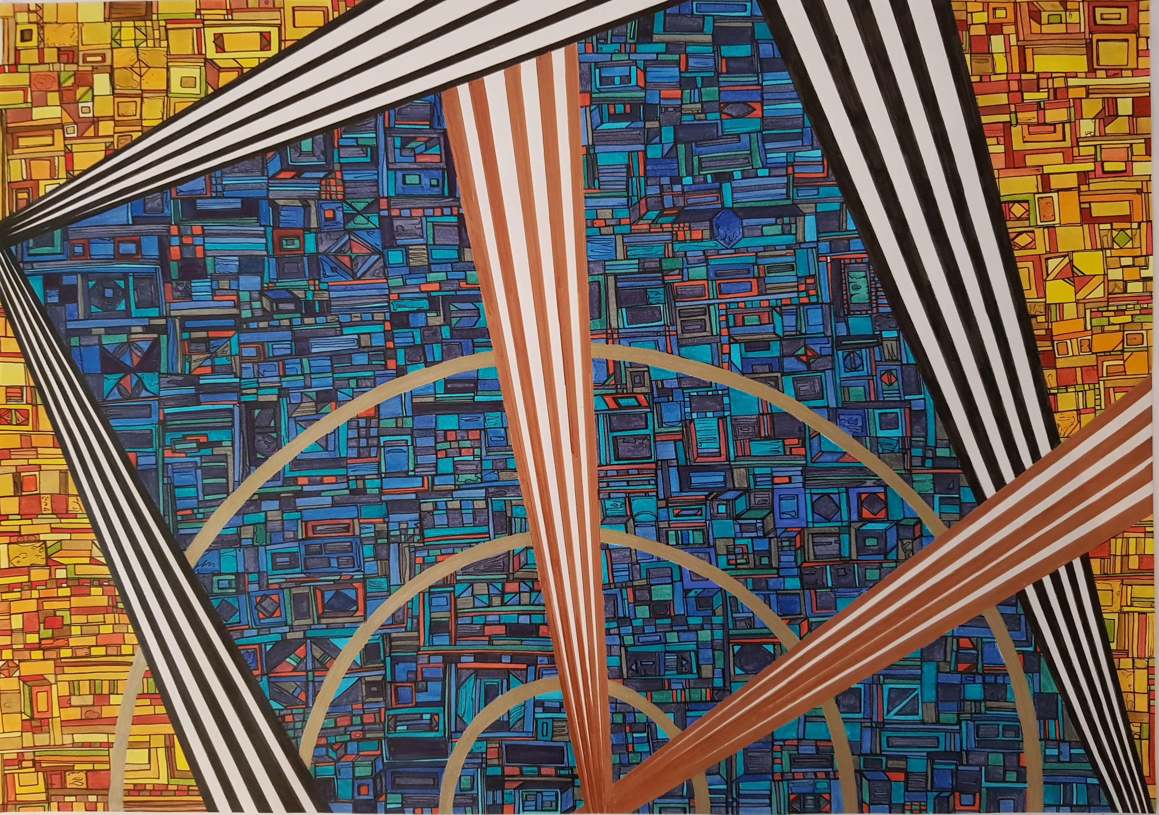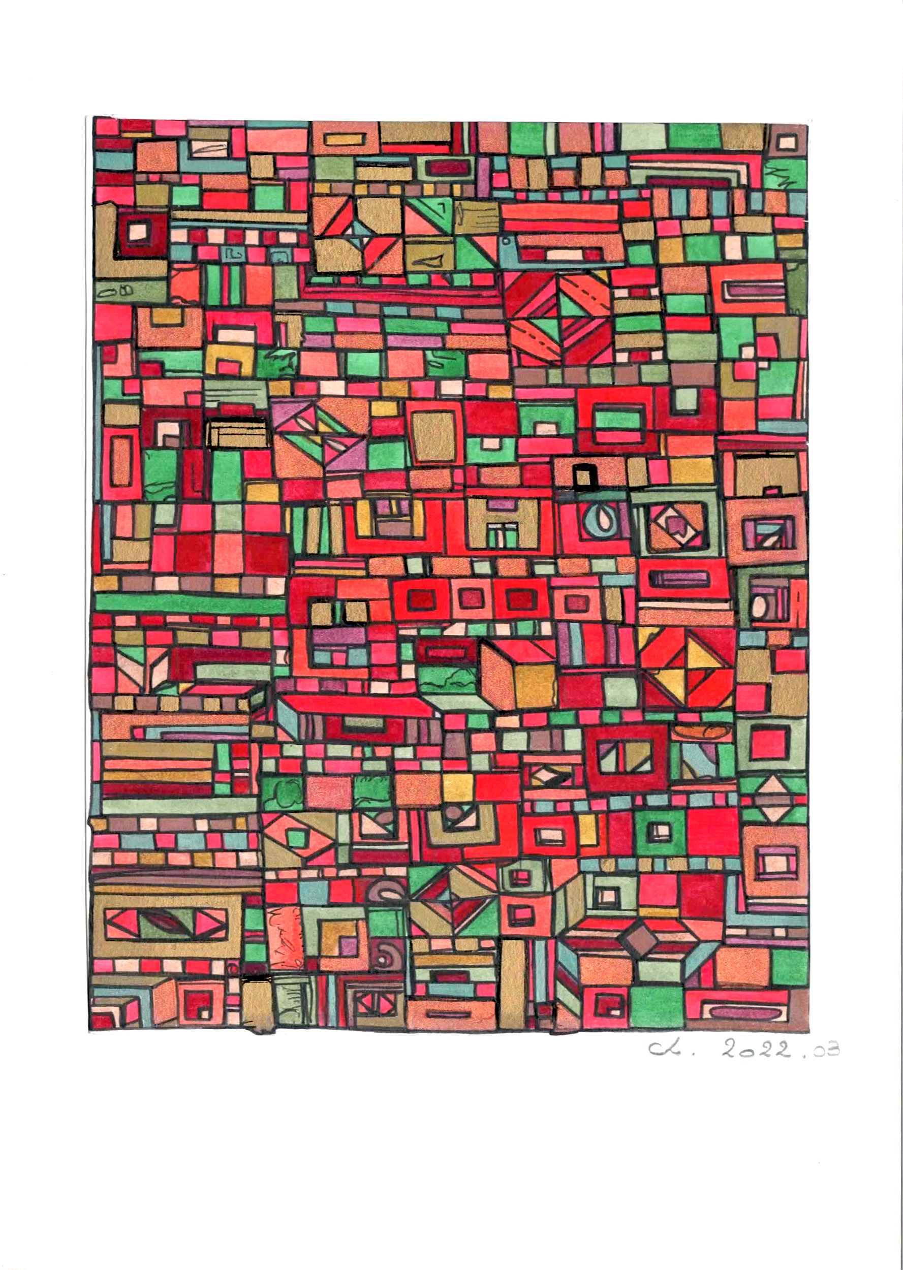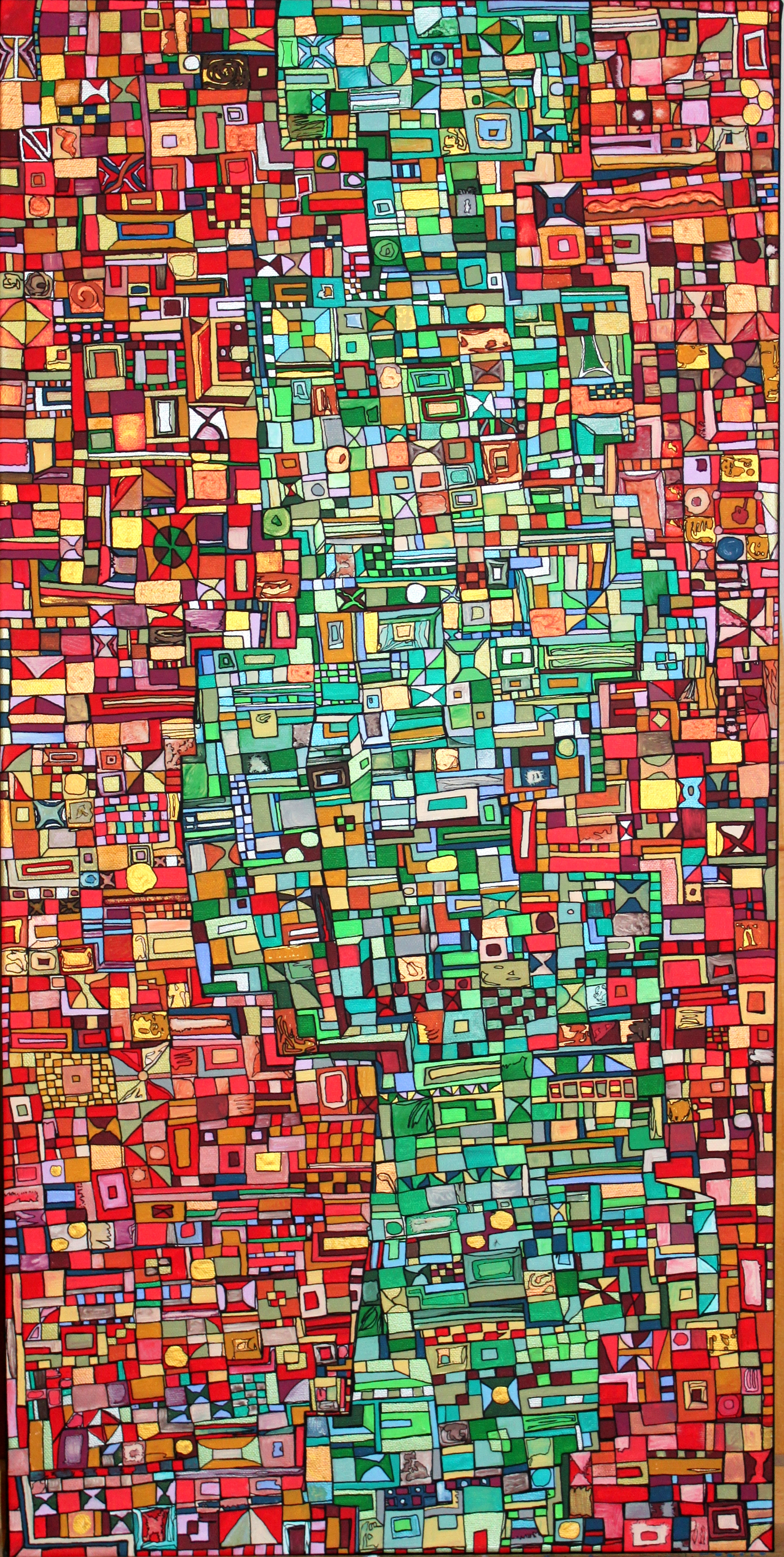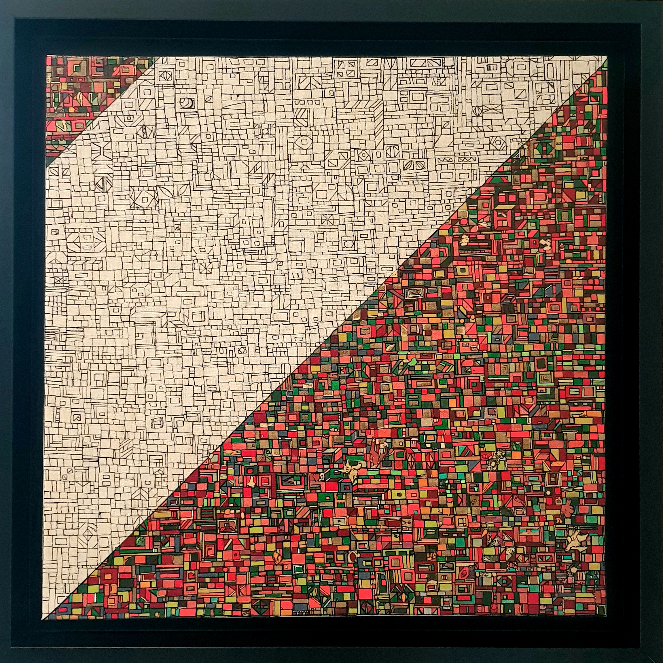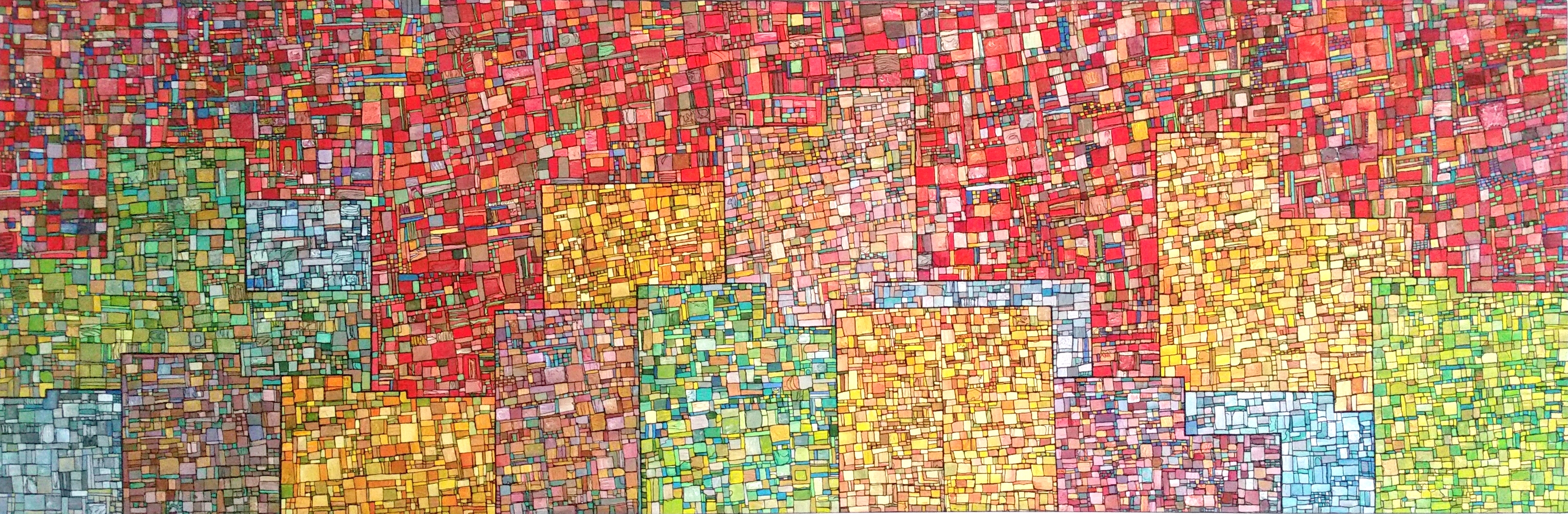 Des centaines d’heures de travail pour chaque œuvre. Un travail minutieux, répétitif, contemplatif, intuitif mais ô combien libérateur pour l’artiste mais aussi pour le regardeur. Une conversation s’installe dans un voyage à partager.