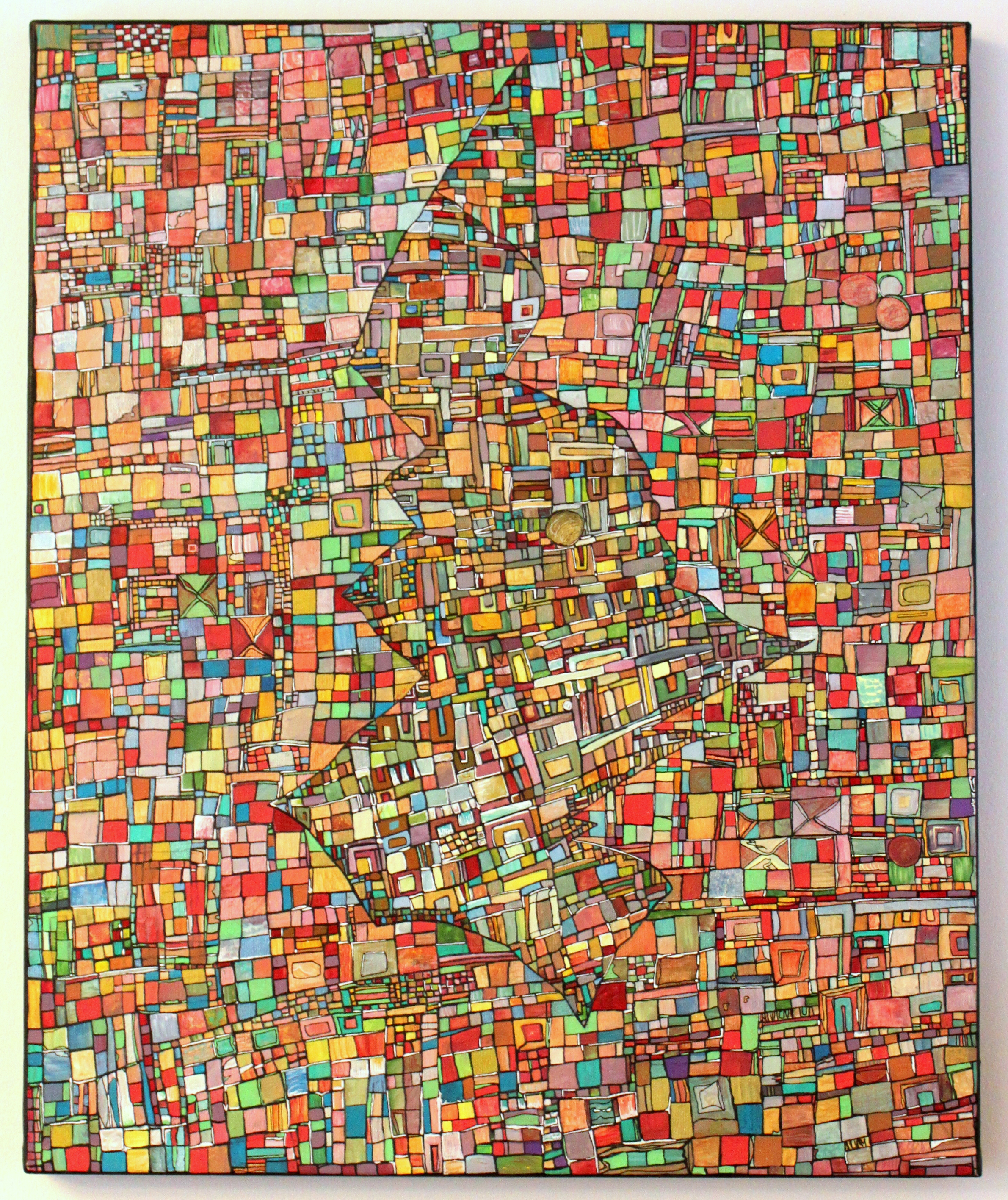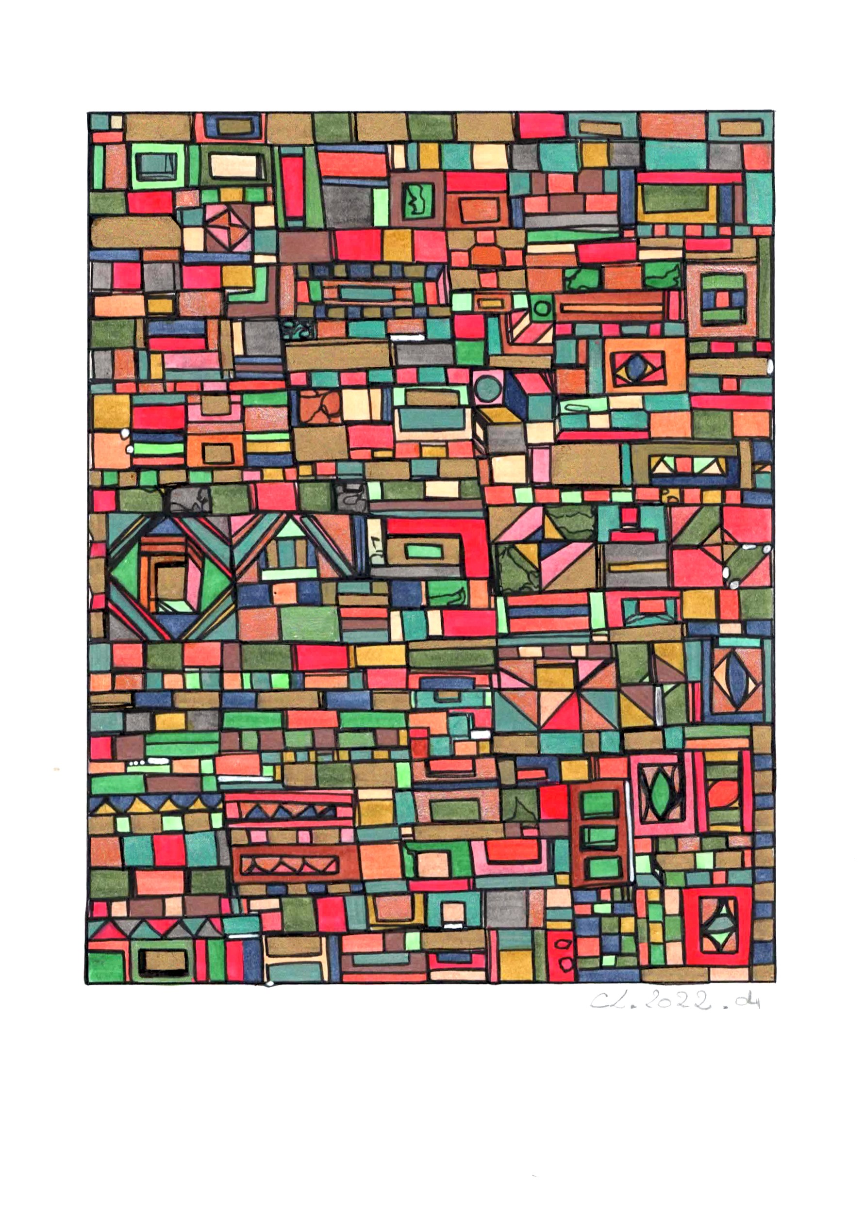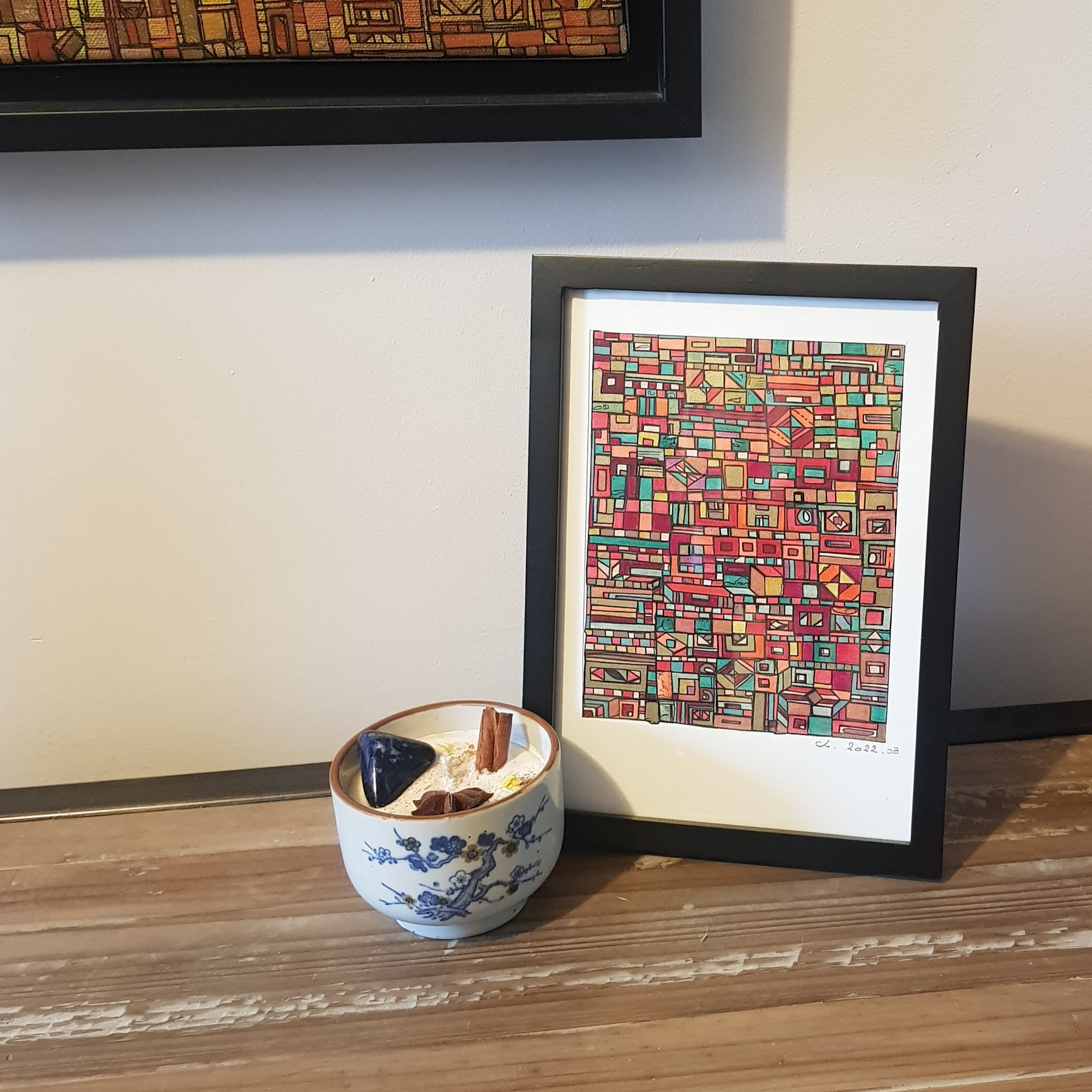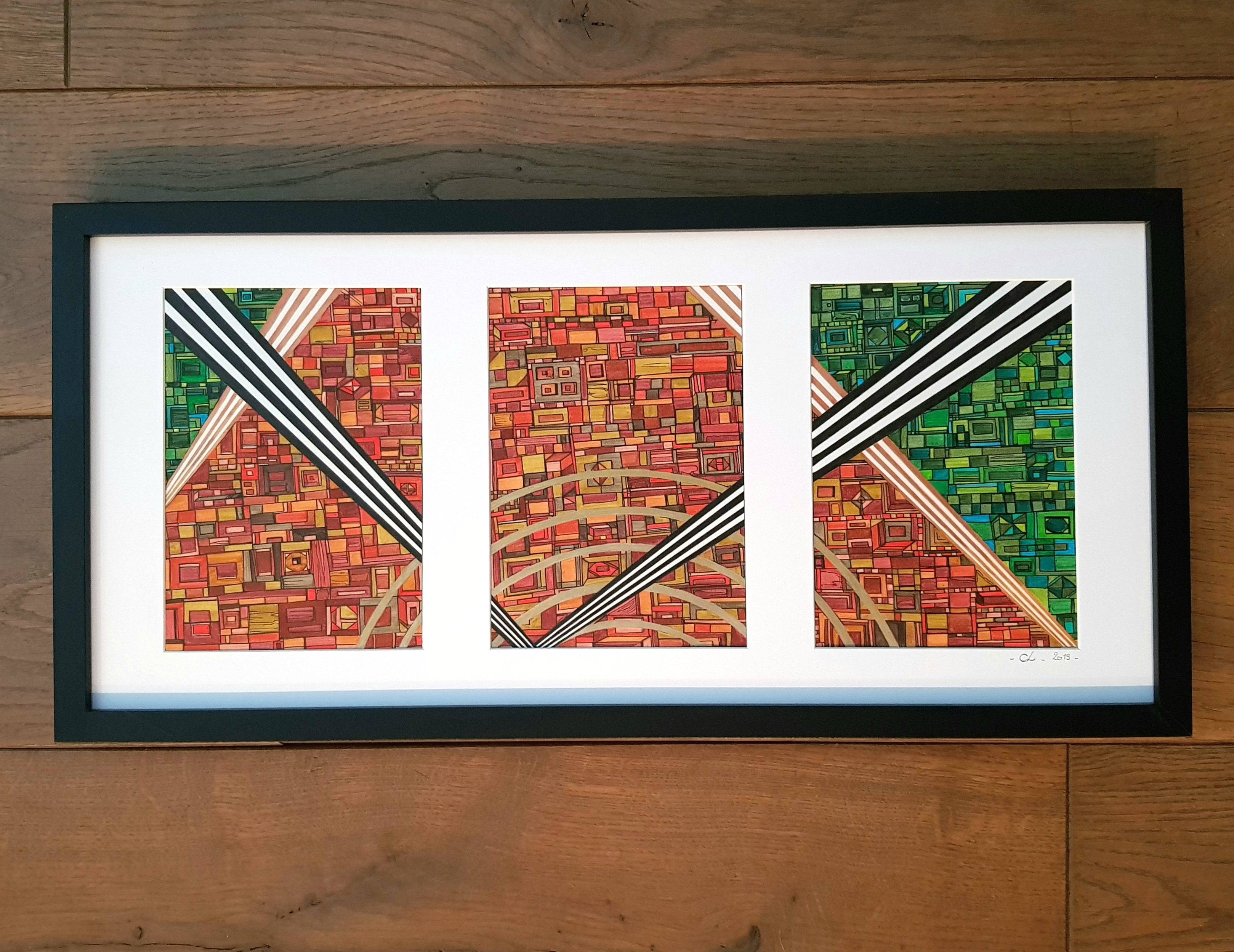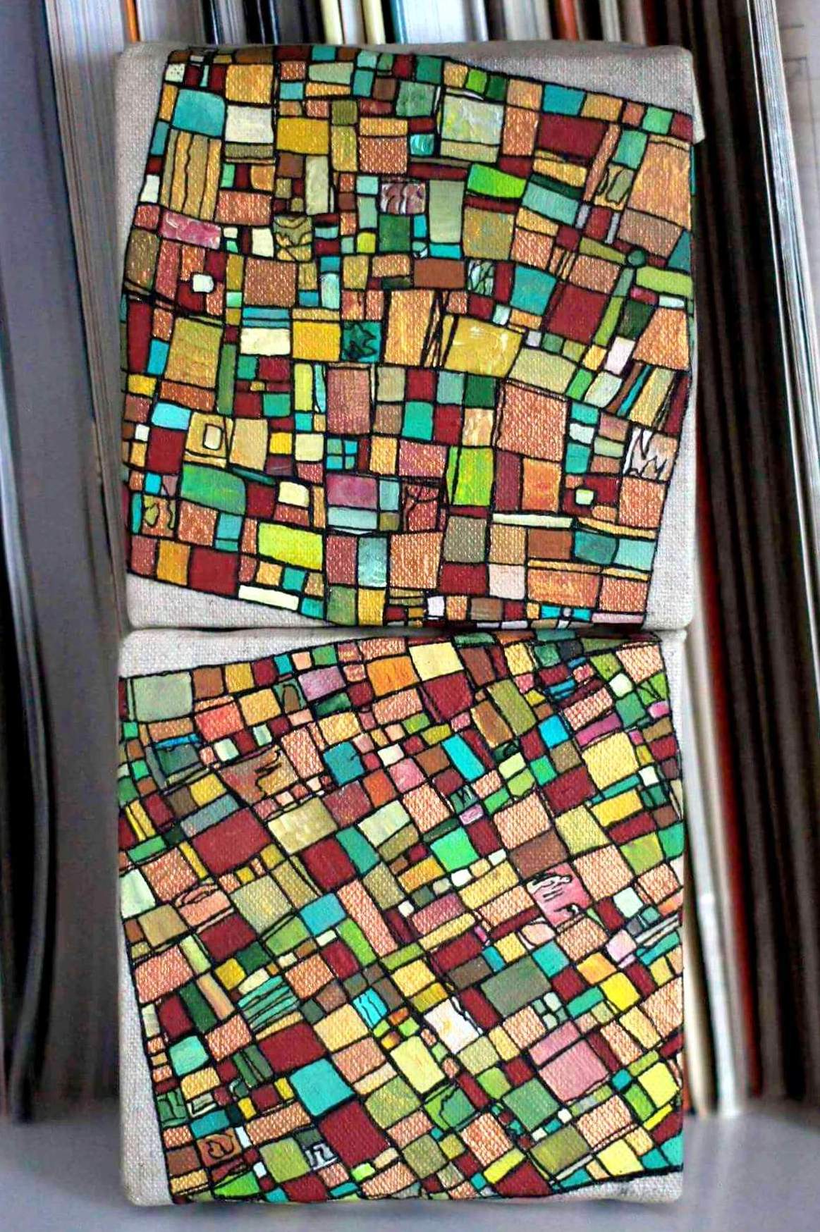 Les toiles et sculptures de Robert Tatin issues d’une enfance mayennaise, la célèbre mosaïque des frères Odorico découverte en arrivant à Rennes en 2003 pour son Master en Histoire et Critique des arts, suivi de la découverte des Années 1900, l’Art Nouveau, les Art and Crafts. Egalement émerveillée par l’univers d’Hundertwasser ou encore plus récemment Claude Viallat, Charlotte Lalandes montre un attachement profond à l’abstraction géométrique, son travail en est imprégné par 8 années d’expérience en galerie d’art contemporain.