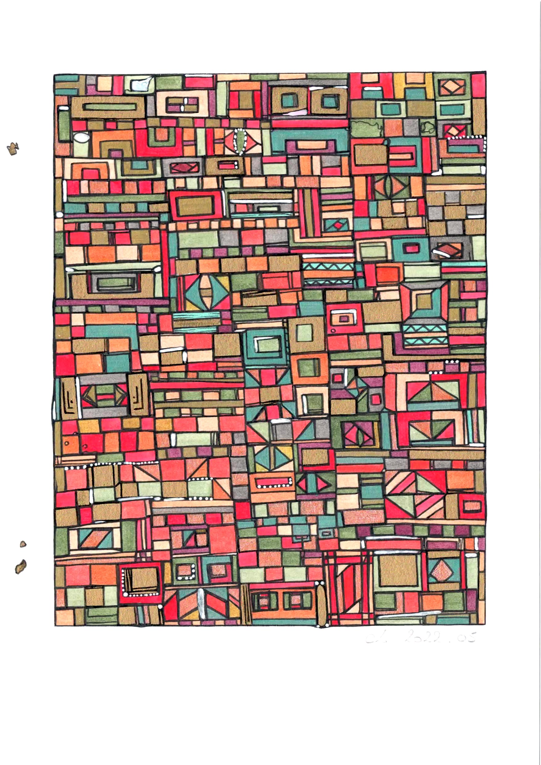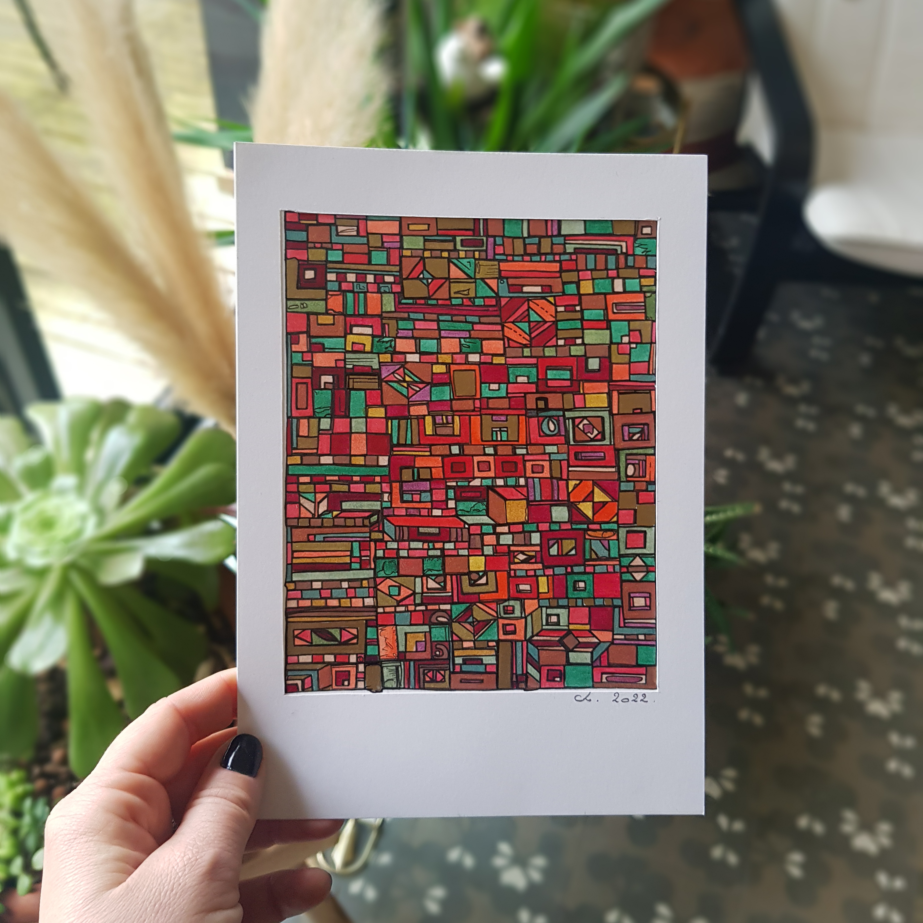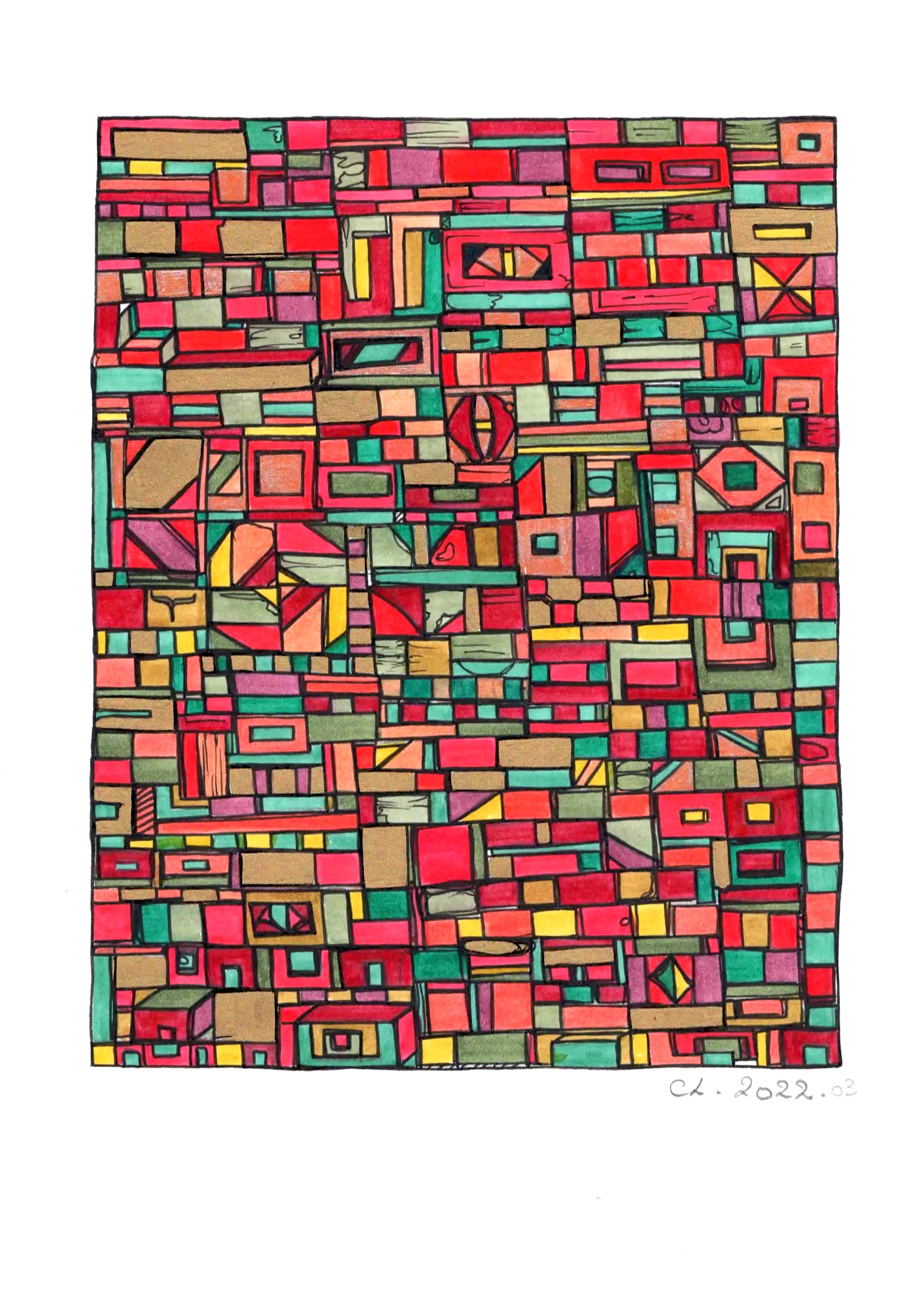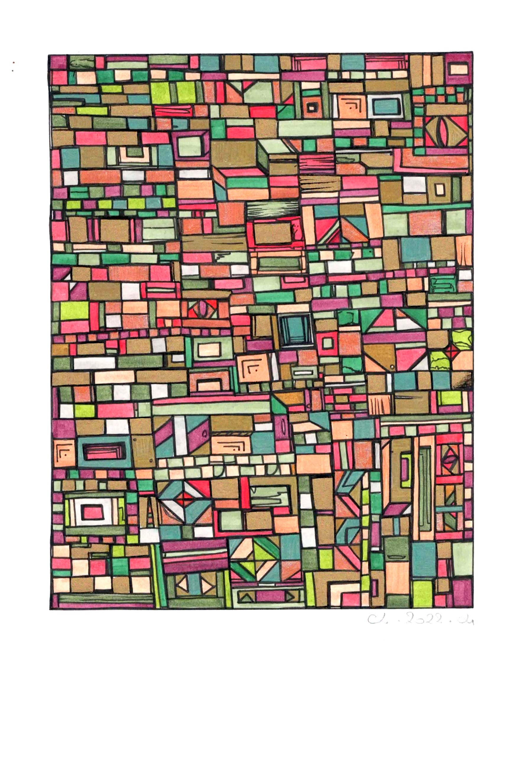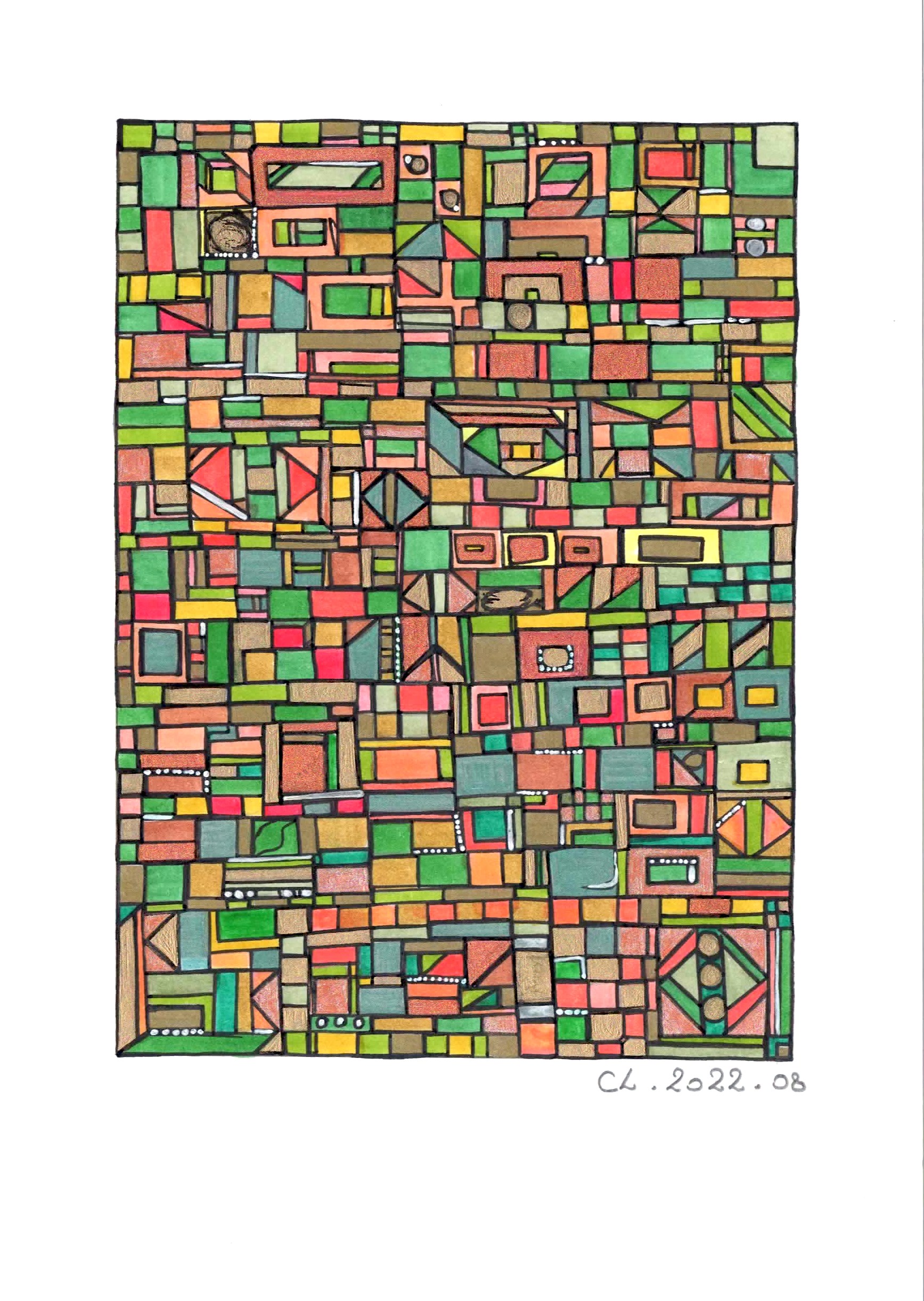Les toiles et sculptures de Robert Tatin issues d’une enfance mayennaise, la célèbre mosaïque des frères Odorico découverte en arrivant à Rennes en 2003 pour son Master en Histoire et Critique des arts, suivi de la découverte des Années 1900, l’Art Nouveau, les Art and Crafts. Egalement émerveillée par l’univers d’Hundertwasser ou encore plus récemment Claude Viallat, Charlotte Lalandes montre un attachement profond à l’abstraction géométrique, son travail en est imprégné par 8 années d’expérience en galerie d’art contemporain.